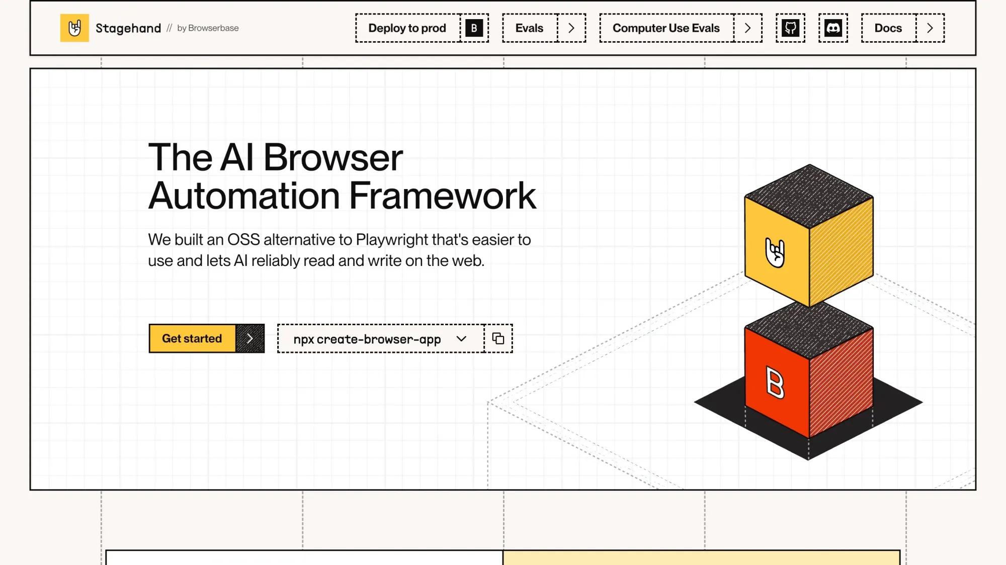 Stagehand is an AI-native, open-source browser automation framework that’s fully compatible with Playwright, but easier to write and significantly more reliable on volatile pages by combining deterministic, atomic actions with LLM adaptability. Built for developers who want the predictability of code without the brittleness of traditional tooling, it delivers repeatable automation, fast performance, and a natural-language-friendly API for extraction and action.