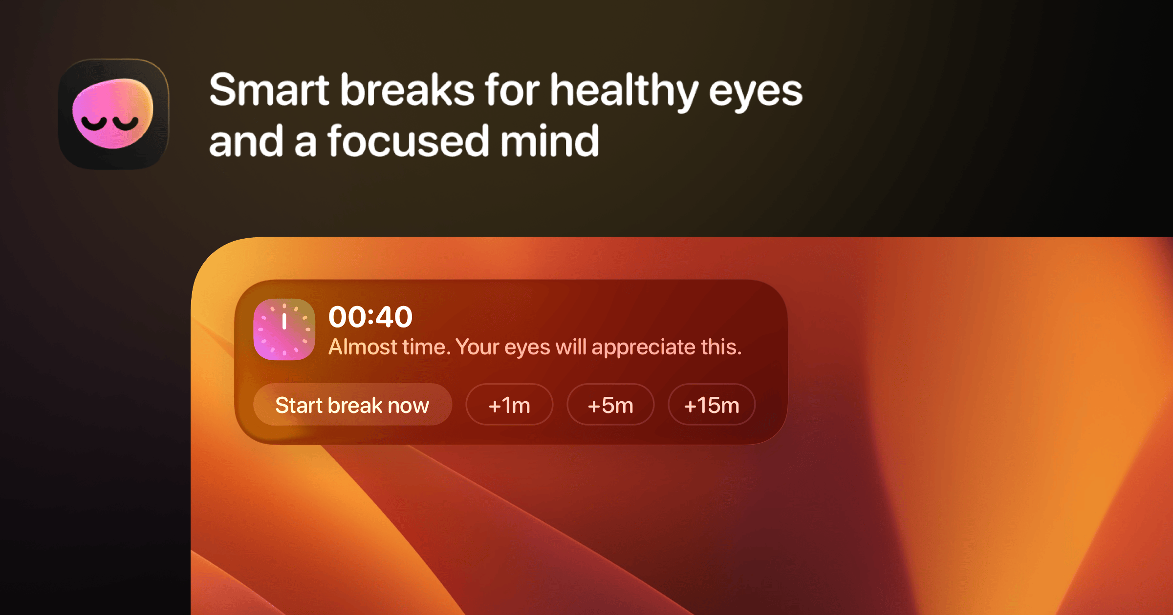 Stop frying your eyes and start taking smarter screen breaks. LookAway is a native Mac app that gently reminds you to rest your eyes, fix your posture, and actually blink, without killing your deep work session.